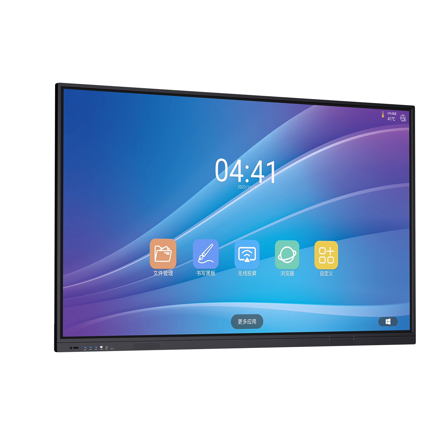 5、前置三路USB接口支持雙通道共享,一路HDMI輸入,一路TOUCH ,一路TYPE-C(數(shù)據(jù)讀取);